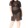 Short sleeve mesh dress with side slit.