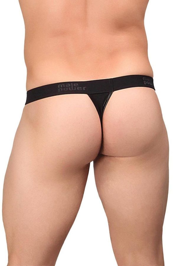 Stretch micro prolong thong features pouch with circular cutout, plush branded elastic waistband and classic thong back.