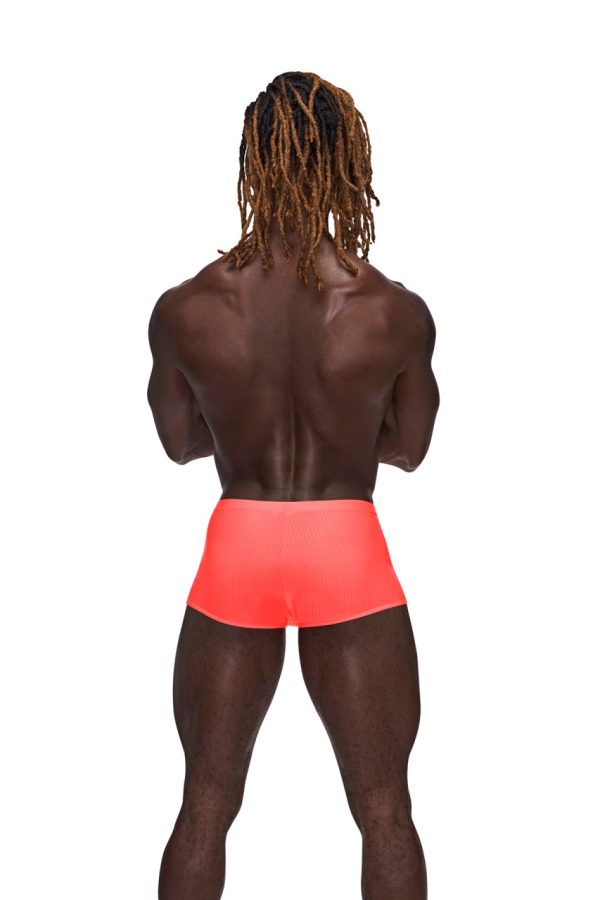 From the Barely There collection by Male Power, the Mini Short features a low cut waist, high cut legs and a generous contoured pouch. Silky smooth, supple poly spandex. Ultra lightweight with tone on tone verticle striping. Hand wash separately, cold water, line dry, no bleach