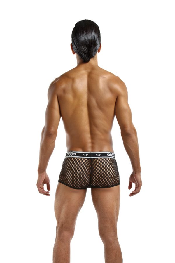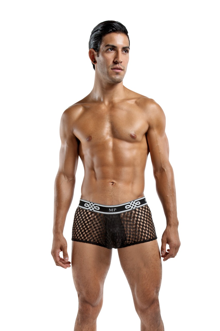 Mini pouch short with lined pouch, waist, high cut legs, new plush MP logo’d waistband.