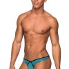 Mini thong, ultra low cut waist, 1 inch sides and back, enhancing nylon trim on waist and pouch