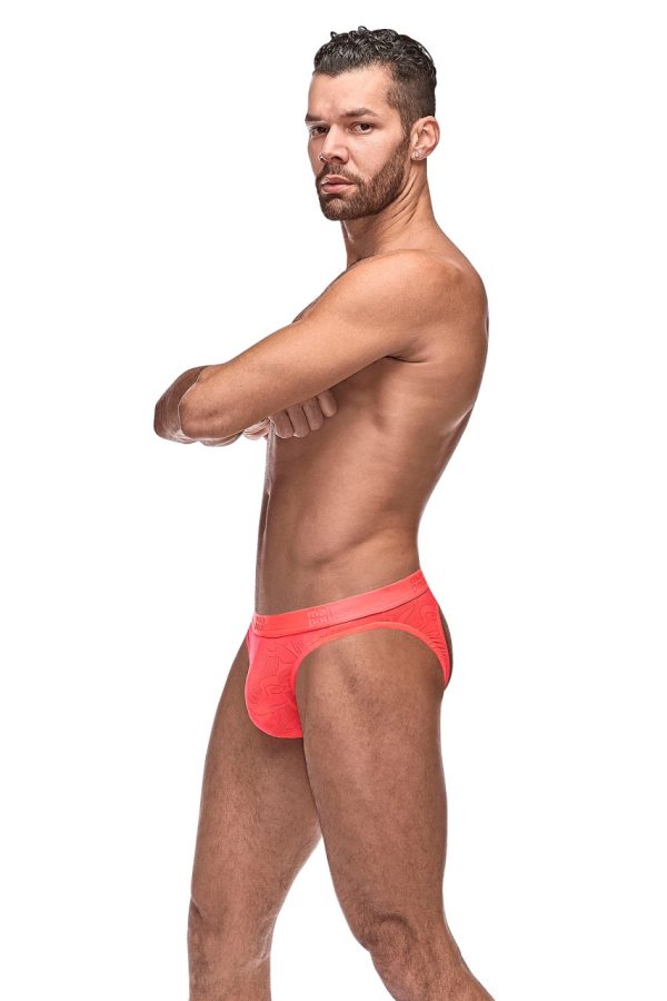 From the Impressions collection by Male Power, this style includes: A moonshine jock brief, full cut front, natural comfort pouch, rear exposure, embossed tone on tone logo’d waistband. Semi Sheer lightweight fabric with an embossed abstract swirl pattern Hand Wash Separately, Cold Water Line Dry, Do Not Bleach