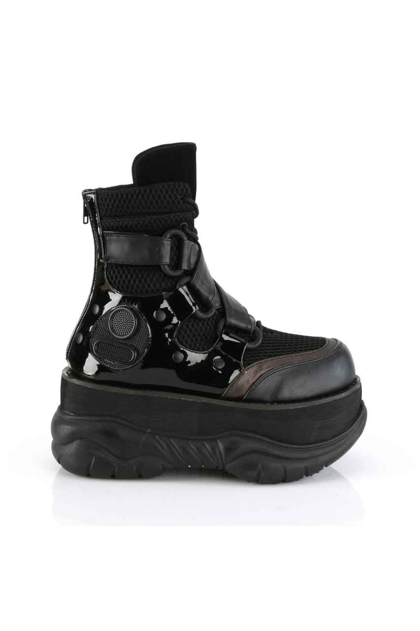 Blk Vegan Leather-Fishnet Fabric-Pat