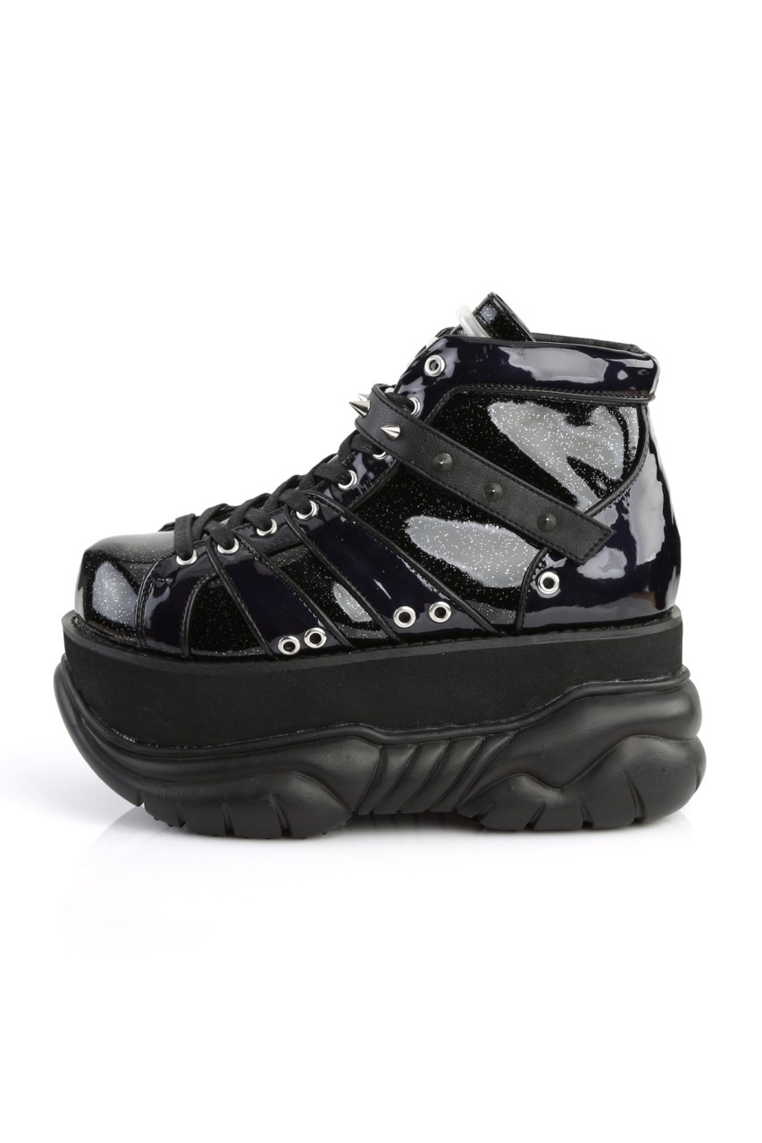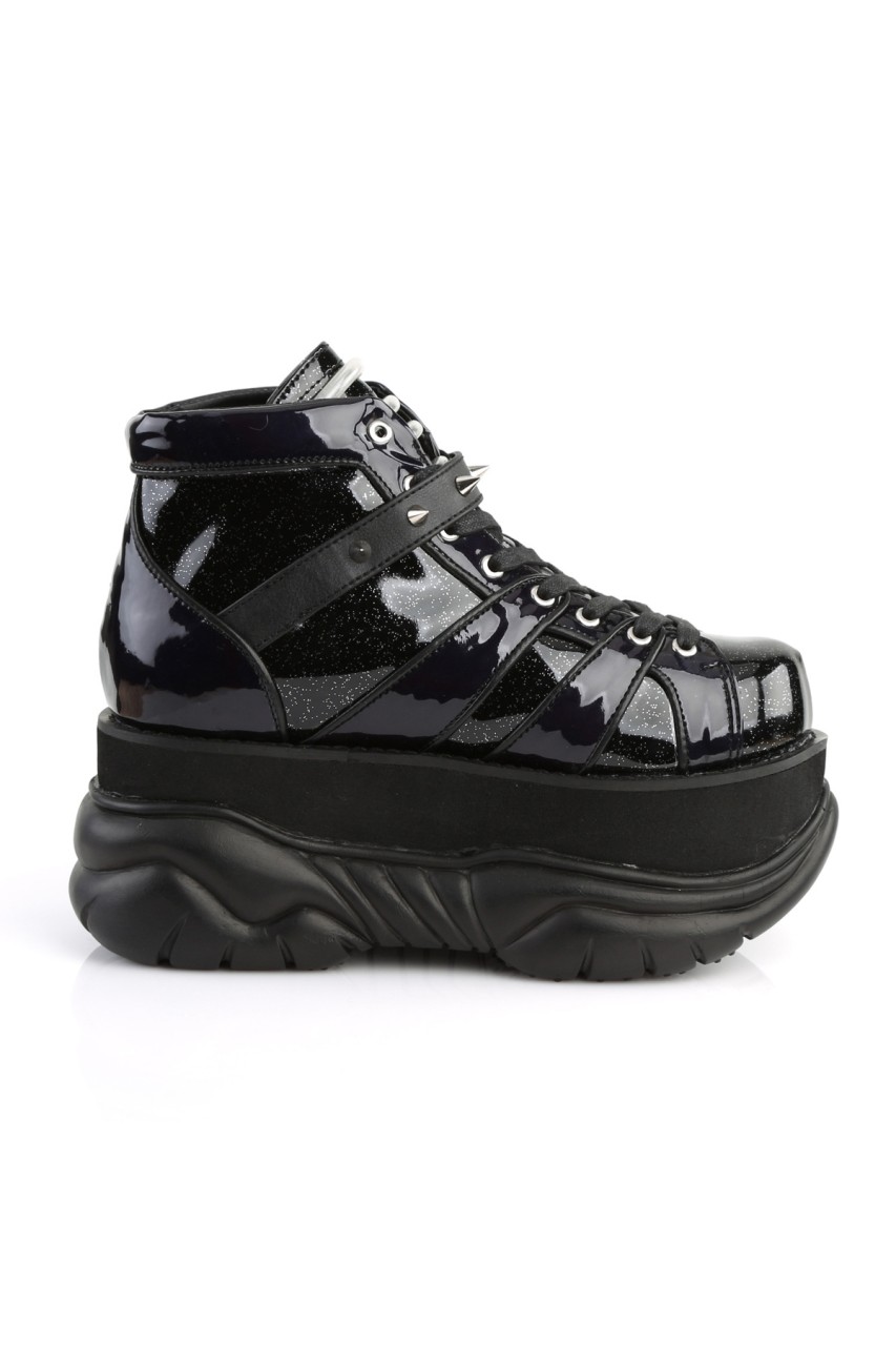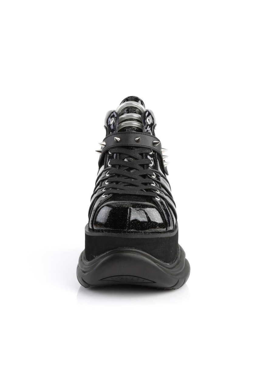 3″” (76mm) Platform Lace-Up Shoe Featuring Hook N’ Loop Ankle Strap w/ Cone Studs and UV Reactive Tubbing on Tongue