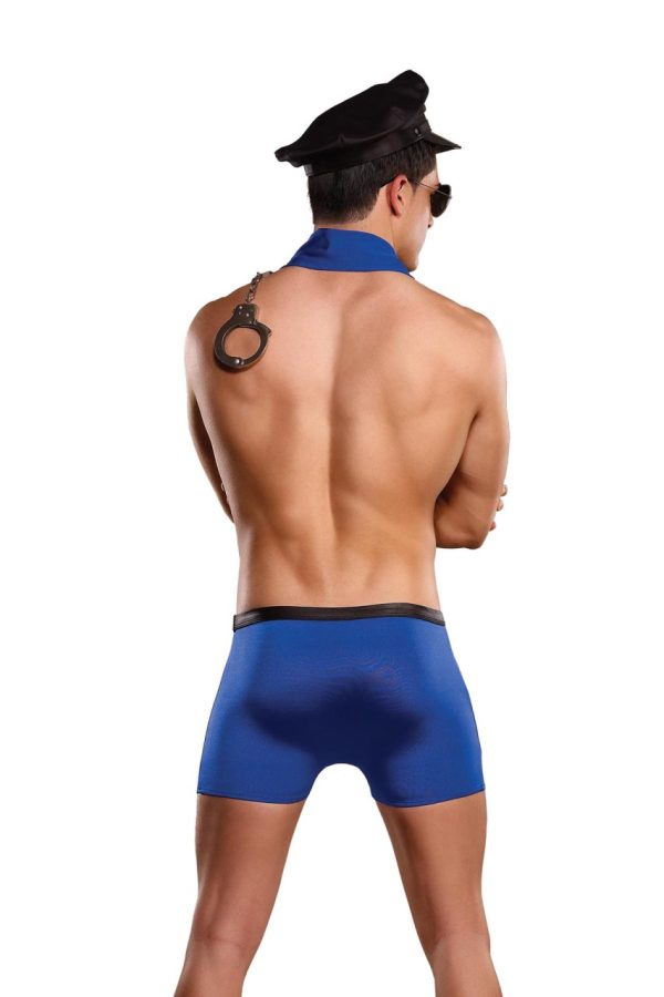 Officer Frisk-Em includes short featuring contrast pouch with functional zipper, O ring slider and cire waistband, clip on badge and collar with attached tie