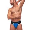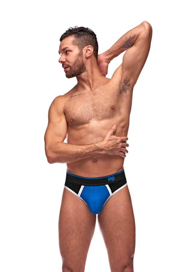 From the Retro Sport collection by Male Power, this style includes: A panel thong with color blocked fabric inserts, full front coverage accented with white trim and stripes, plush elastic waistband with MP logo. Cool absorbant cotton spandex, durable stretch for a comfortable fit. Hand Wash Separately, Cold Water Line Dry, Do Not Bleach