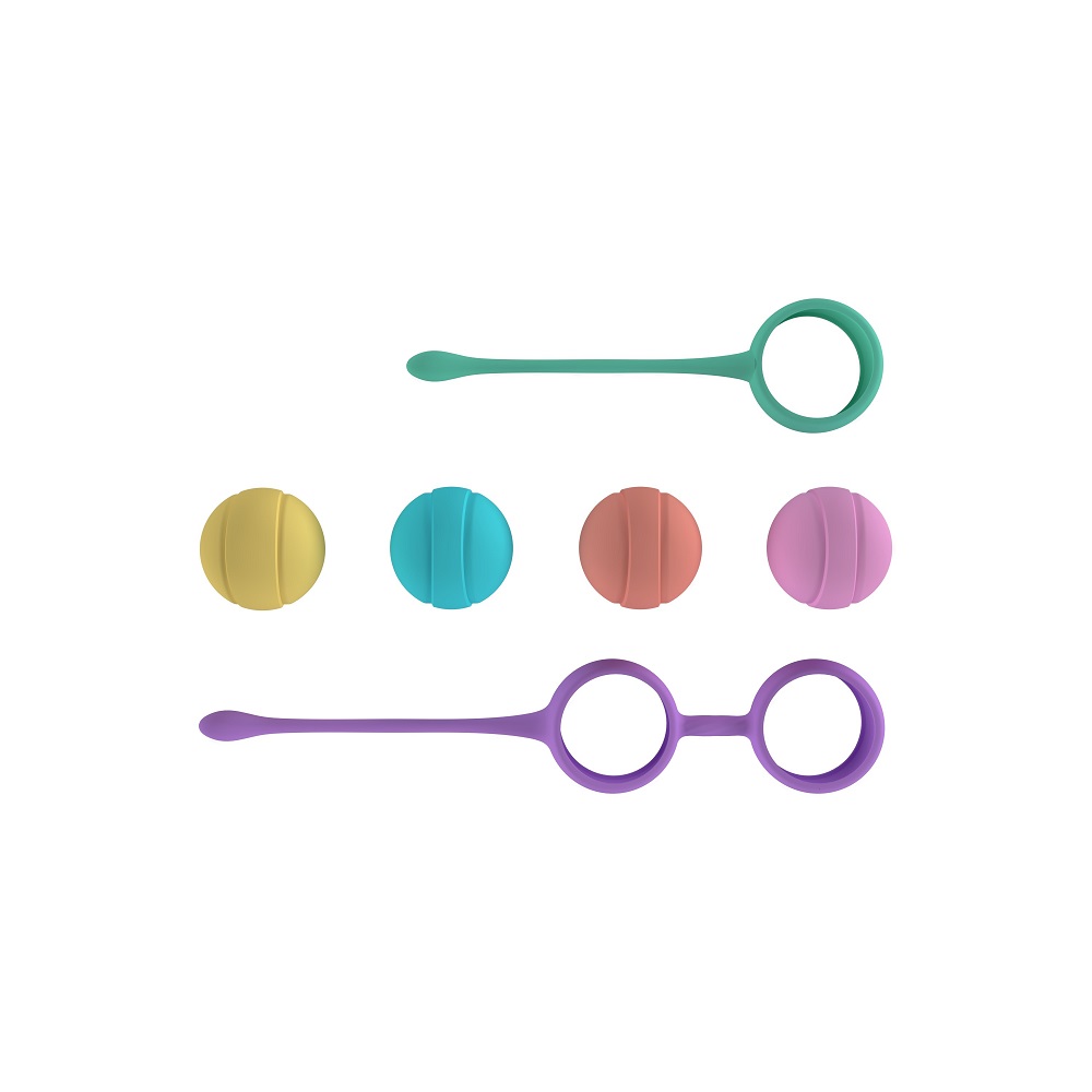 This set of high-quality silicone Chinese balls is designed for safe and effective pelvic floor muscle exercise. The kit includes four progressively weighted balls (18g, 30g, 40g, and 55g), each with a distinct colour for easy identification and progression. For optimal comfort, use with a water-based lubricant. Regular use is recommended to maximize results. Care instructions: