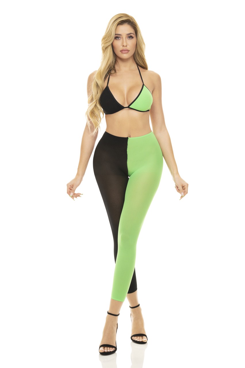 Very daring bra and open string set designed to flatter the lines of the figure and leave nothing to the imagination! Made with elastic straps and decorated in bows adorned with beautiful rhinestones. Garter included. Gloves not included. This item arrives packed in a Provocative box.