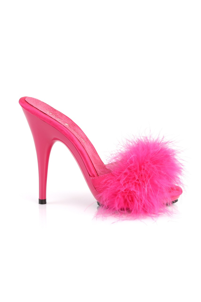 5″” (12.7cm) Heel, 3/8″” (1cm) Platform Marabou Sandal Hot Pink