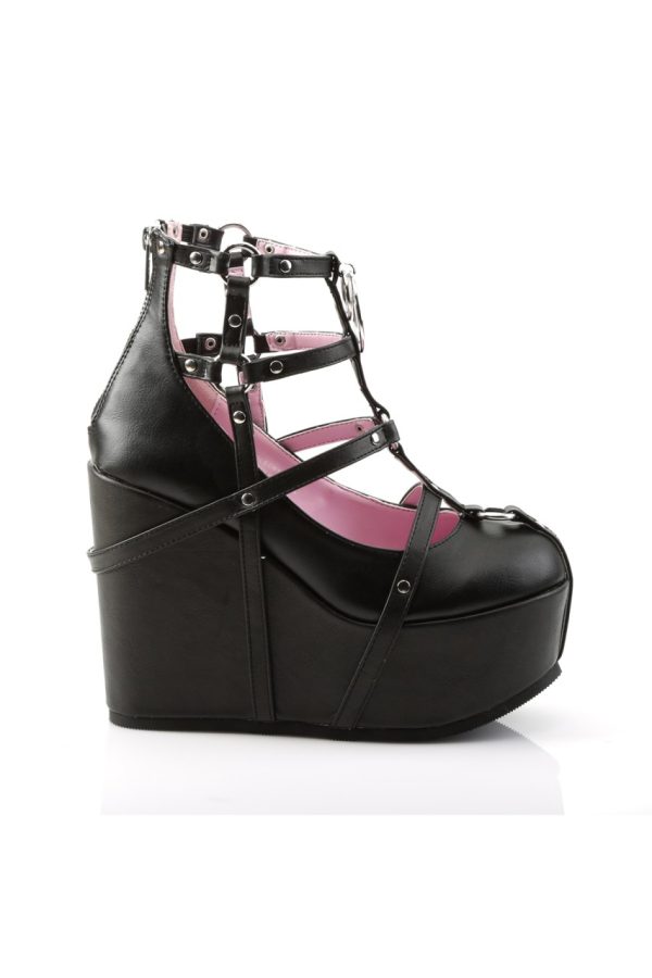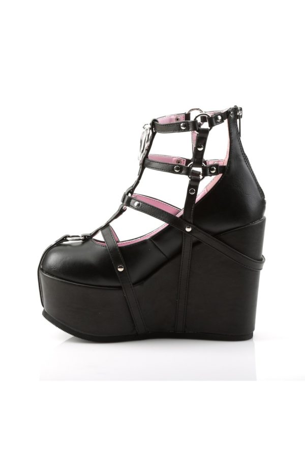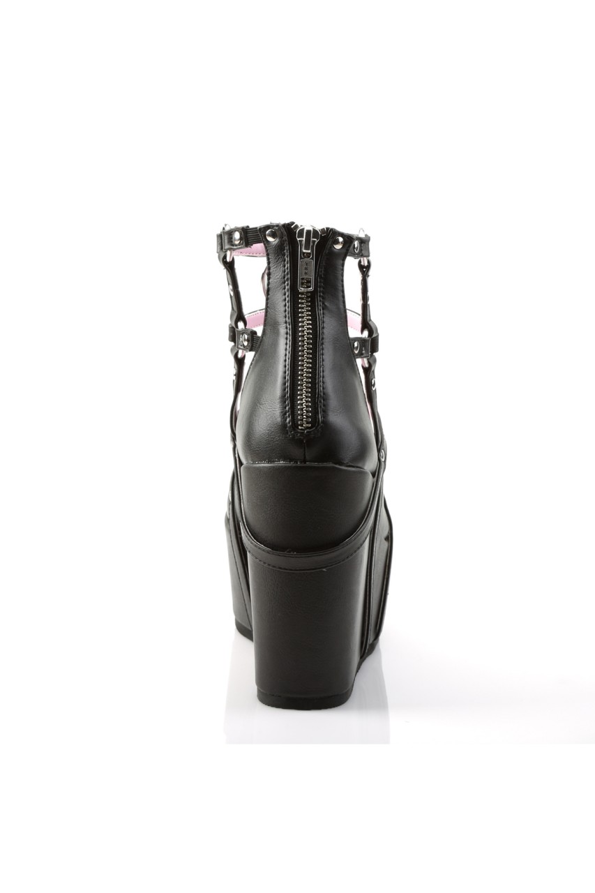 5″” (12.7cm) Wedge Platform Cage Bootie Featuring Studding, Multi-Sized O-Rings & Pentagram Charm