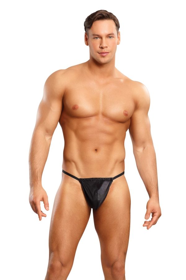 Satin posing strap features comfortable fit pouch, plush elastic trim and g-string back85% Nylon 15% Spandex