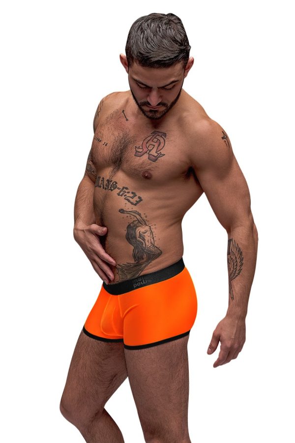 Neon pouch short features comfort fit pouch and plush elastic waistband and trim.