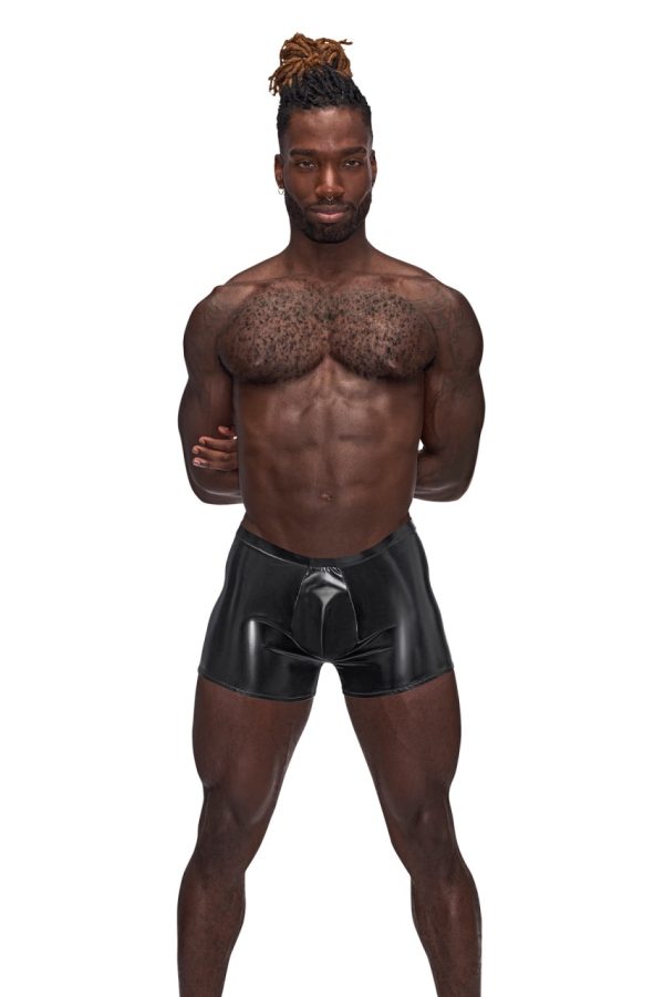 Liquid Onyx pouch short features comfort fit pouch and tone on tone plush elastic trim.85% Nylon 15% Spandex