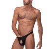 Stretch thong features contour pouch with detachable velcro tab, classic thong back and plush elastic waistband and trim.