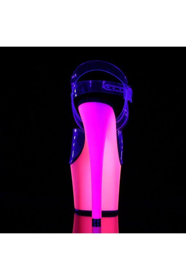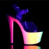 7″” (17.8cm) Heel, 2 3/4″” (7cm) Platform Ankle Strap Sandal Featuring Neon UV Reactive Multicolored Platform Bottom
