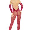 Pretty boobless bodystocking with different complementary patterns. three quarter sleeves and bows! Item arrives boxed. Please note the thong is not included.