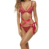 That’s why the lady is a VAMP!. Carmina is shamelessly dark and seductive. Push up bra with removable pads. There is a ribbon bow in the centre of the bust and the bra itself is in a deep red satin overlaid with intricate black lace. Bra straps are removable and they too feature a pretty black ribbon bow. Matching thong sold separately. Available in red and black.