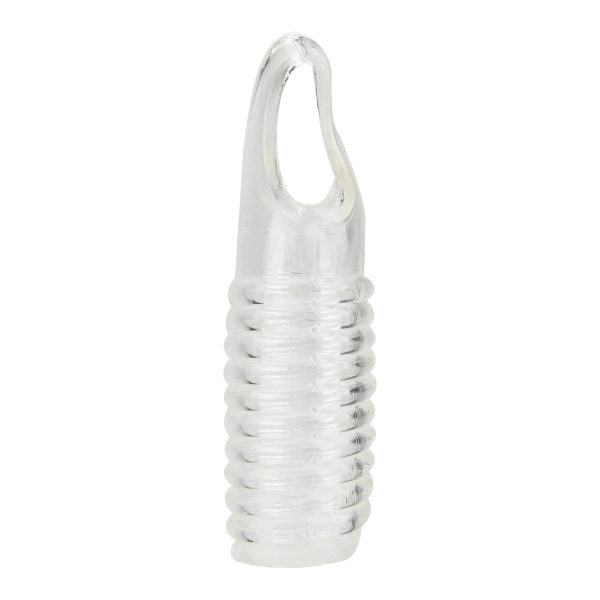 Dive into a world of enhanced pleasure with this stretchy, ribbed penis sleeve. The comfortable penis sleeve can boost your partner’s pleasure and your girth. It features a ribbed design that will stimulate your partner both vaginally and anally and has a ball loop to keep the penis sleeve in place. Always use this penis sleeve with plenty of water-based lubricant to get maximum sensations. Product features: