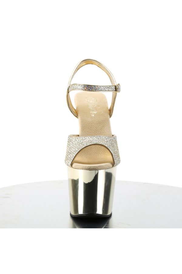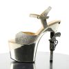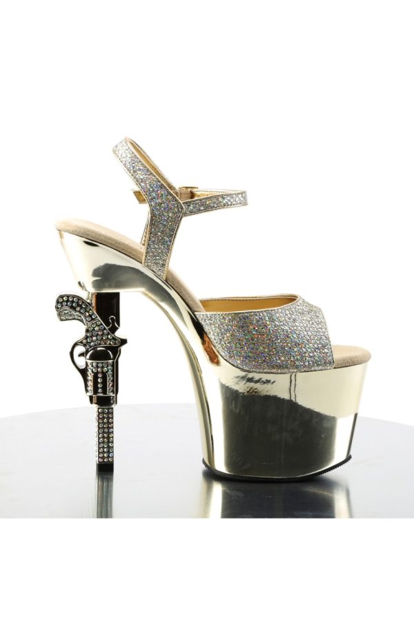 7″” (17.8cm) Rhinestone Embellished Gun Heel, 3 1/4″” (8.3cm) Platform Ankle Strap Sandal