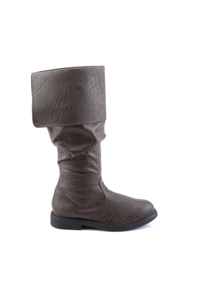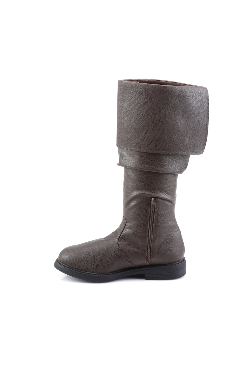 1″”(2.5cm) Flat Heel Cuffed Knee High Renaissance Boot, Inner Side Zip Closure