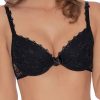 Kalisi is an exciting two section cup push-up bra beautifully decorated with gorgeous floral embroidery and scalloped lace edging. Between the cups sits a lovely satin bow with a netted embroidery feature that fits underneath. On the cups beautiful and shiny embroidery backed by complementary netting. The wings subsequent from the cups have a small netted panel which the embroidery flows onto. This then finishes the wing with a soft and gentle fabric. Embroidered between the netting and the fabric are little flowers. Kalisi has thick adjustable bra straps which have stunning ribbon lace and the netted embroidery feature with a small satin bow at the top. Inside the cups are removable pads. Hook and eye feature at the back for adjustment. Available in black and white. The white is perfect for bridal season! Soft-cup bra brief and thong all available separately. Kalisi arrives packaged in her own Roza box.
