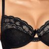 A beautiful soft cup bra with a pretty bow in the centre. This soft cup bra has a two-sectional cup construction with gorgeous lace at the top of the cup. The bottom half of the cup is decorated with transparent mesh with subtle polka dots. The cups are underwired with adjustable shoulder straps and the bra can be fastened at the back with a hook and eye fastening. This item arrives packaged in a lovely Roza box making it ideal as a gift or special treat. The Lagerta collection comprises of a push up bra, soft cup bra, thong or brief all available in black or white. Each piece is sold separately to maximise the mix and match options. Please see the ‘Related Products’ tab below to see other combinations.