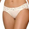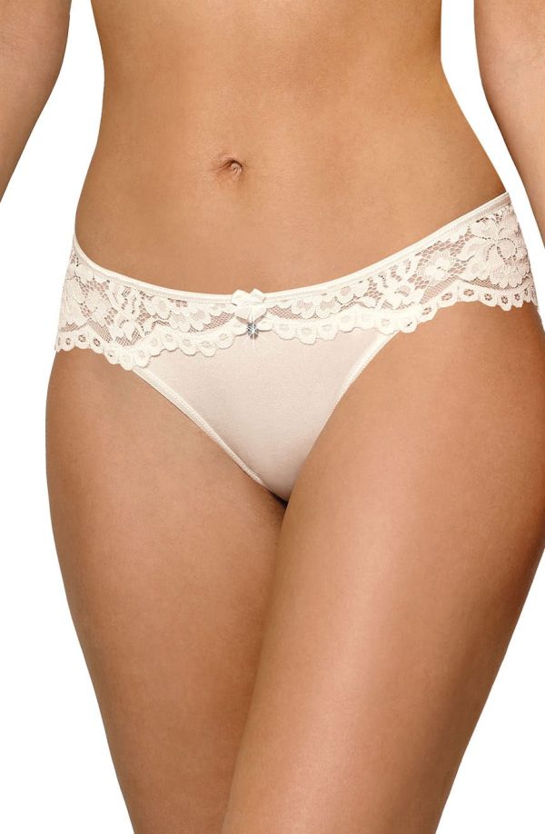 Newia Brief in ivory (shown in the picture with the soft cup bra option) is super soft with all over lace at the back. The front has lovely scalloped lace to match the push up or soft cup bra options. The brief has a lovey satin ribbon bow and diamante detail. Brief bra and thong options are all sold separately available in four colours and arrive packaged in their own lovely Roza box.