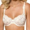 Newia is a lovely lacey collection from Roza offering a choice of four colours push up or soft cup bra options along with a delicate thong or brief. All items are available separately making them a ideal for mix or match options. The lacey ivory soft cup bra is decorated with a centre satin ribbon bow and diamante. The beautiful scalloped edges and decorated straps add to Newia’s feminine charms. Adjustable shoulder straps and hook and eye fastener at the back. This item arrives packaged in a lovely Roza box.