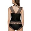 Beautiful soft stretch fabric decorated with oodles of sumptuous eyelash lace. The shoulder straps are made of eyelash lace and are designed to be worn on the shoulders ( due to the design of this top they are not adjustable). The lace necktie is included. Sija arrives packaged in her own Roza box making this item ideal as a gift or treat. The sija collection comprises shirt nightshirt briefs and shorts in a choice of black or white. Please see related products for further details.