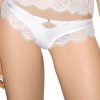 Pretty and soft satin feel briefs decorated with gorgeous eyelash lace. The front has a lovely bow affect detail with metal diamante trim. Sija arrives packaged in her own Roza box making this item ideal as a gift or treat. The sija collection comprises shirt nightshirt briefs and shorts in a choice of black or white. Please see related products for further details.