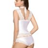 Beautiful soft stretch fabric decorated with oodles of sumptuous eyelash lace. The shoulder straps are made of eyelash lace and are designed to be worn on the shoulders ( due to the design of this top they are not adjustable). The lace necktie is included. Sija arrives packaged in her own Roza box making this item ideal as a gift or treat. The sija collection comprises shirt nightshirt briefs and shorts in a choice of black or white. Please see related products for further details.