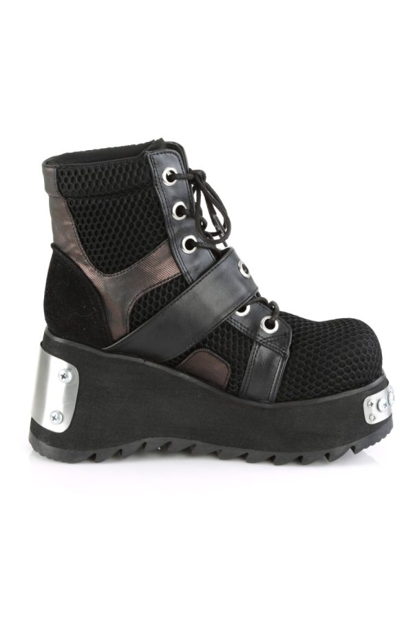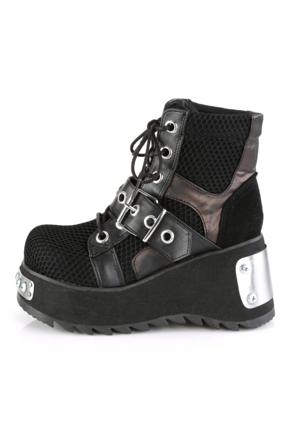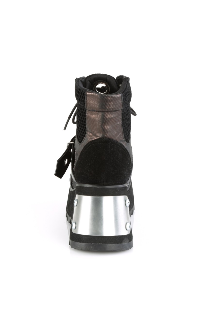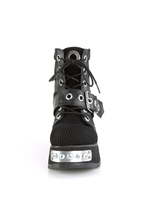 3 1/2″” (89mm) Front & Back Metal Plated Platform Lace-Up Ankle Boot w/ Grommet Buckle Strap and an Oversize Grommet on Tongue