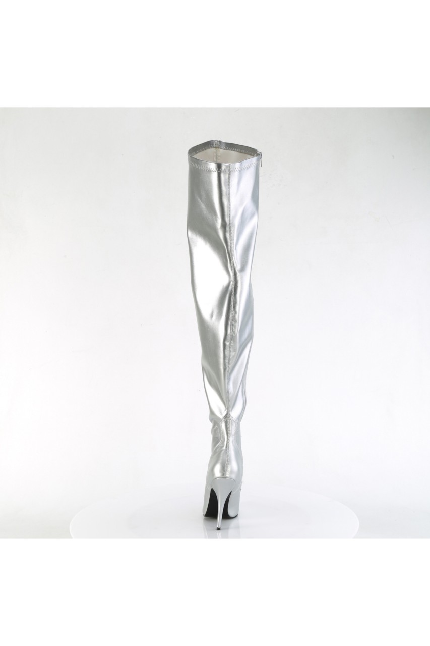 5″” (127mm) Stiletto Heel Wide Shaft Stretch Thigh High Boot, Full-Length Inner Side Zip Closure