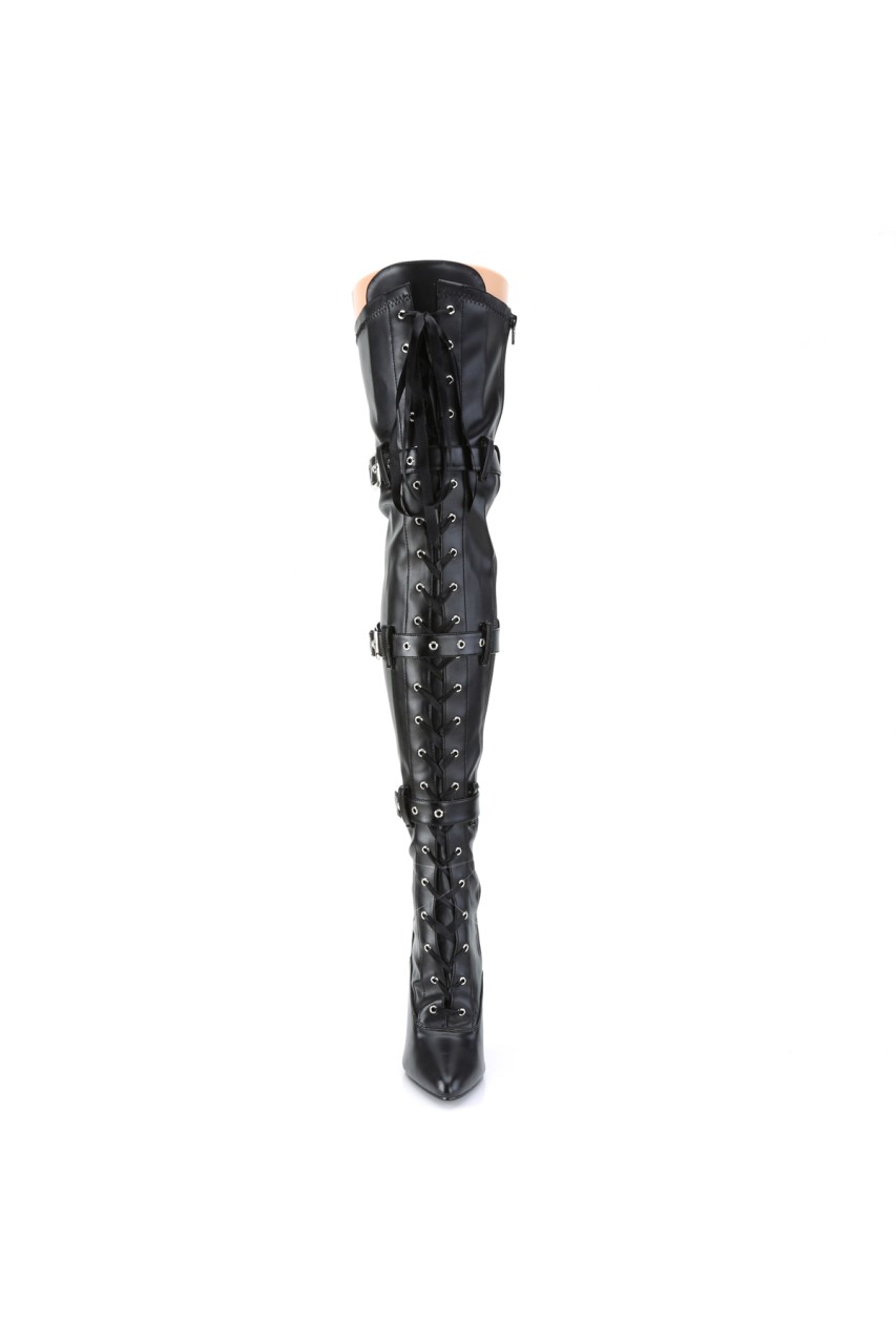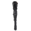 5″” (127mm) Heel Ribbon Lace-Up Front Triple Buckle Strap Stretch Thigh High Boot, Full Inner Side Zip Closure