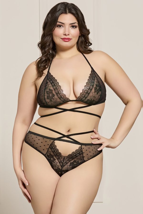 ALL ITEMS IN ‘GRACE’ AND ‘SCARLET’ ARE INTERCHANGEABLE! Scarlet is beautifully decorated in pretty roses with sheer lace panels and polka dots. All items are available in white or black. Item arrives packaged in its own Roza box.