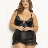 Seven til Midnight – Plus Size Two piece chemise set. Stretch satin and lace chemise – STM11628X