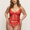 Two piece bustier set. Lace and heart mesh bustier with underwire, front hook and eye, satin ribbon bows, ruffle mesh trim, removable garters, and g-string