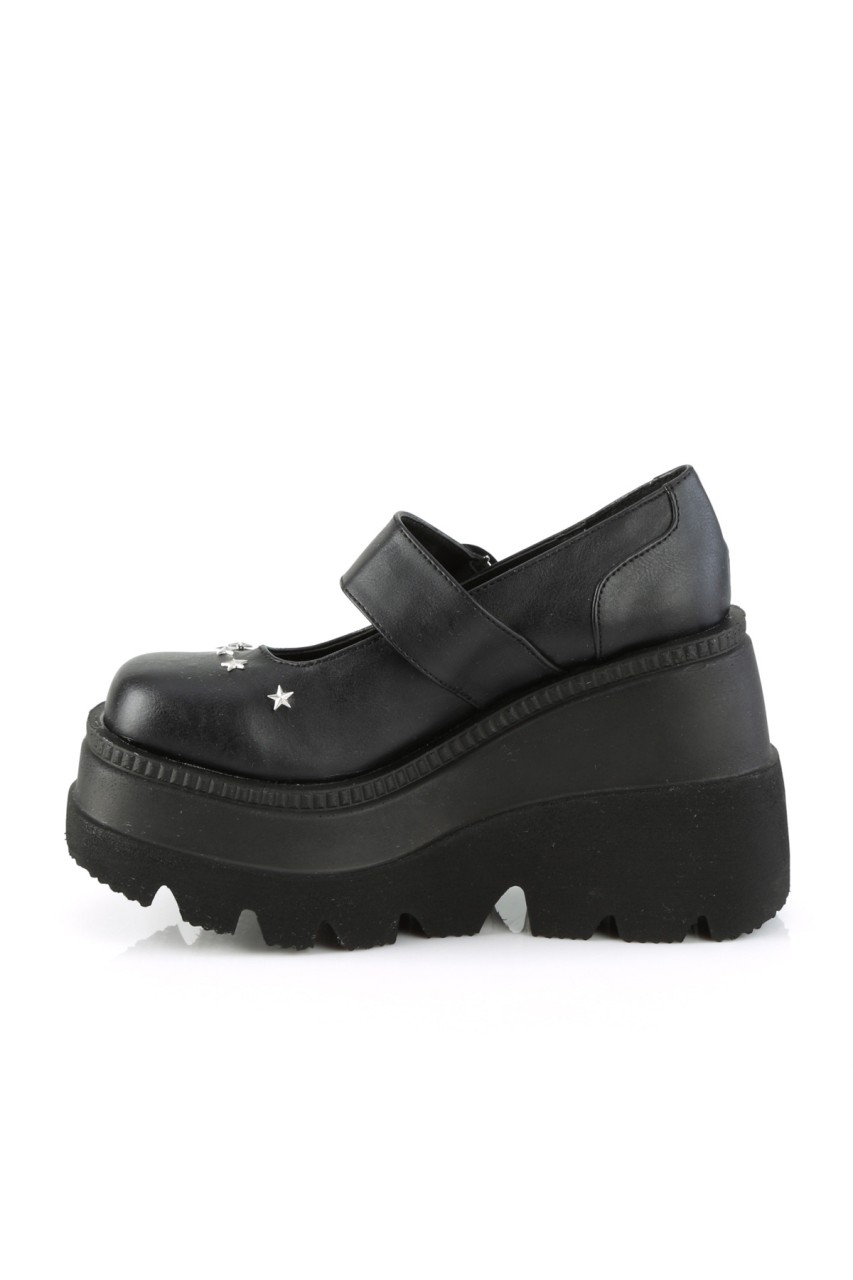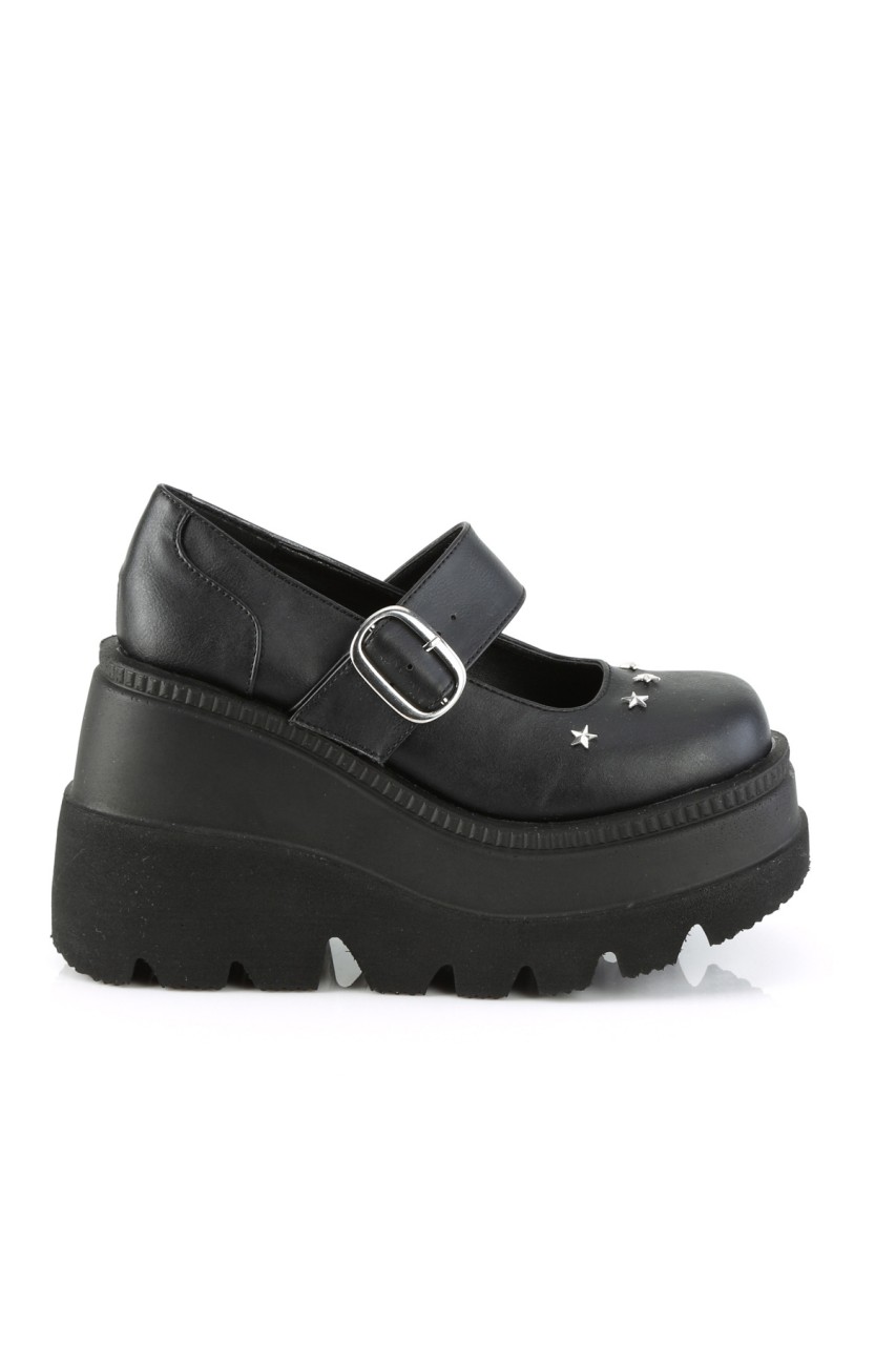 4 1/2″” (114mm) Wedge Platform Buckle Strap Maryjane Featuring Star Studs on Vamp
