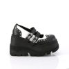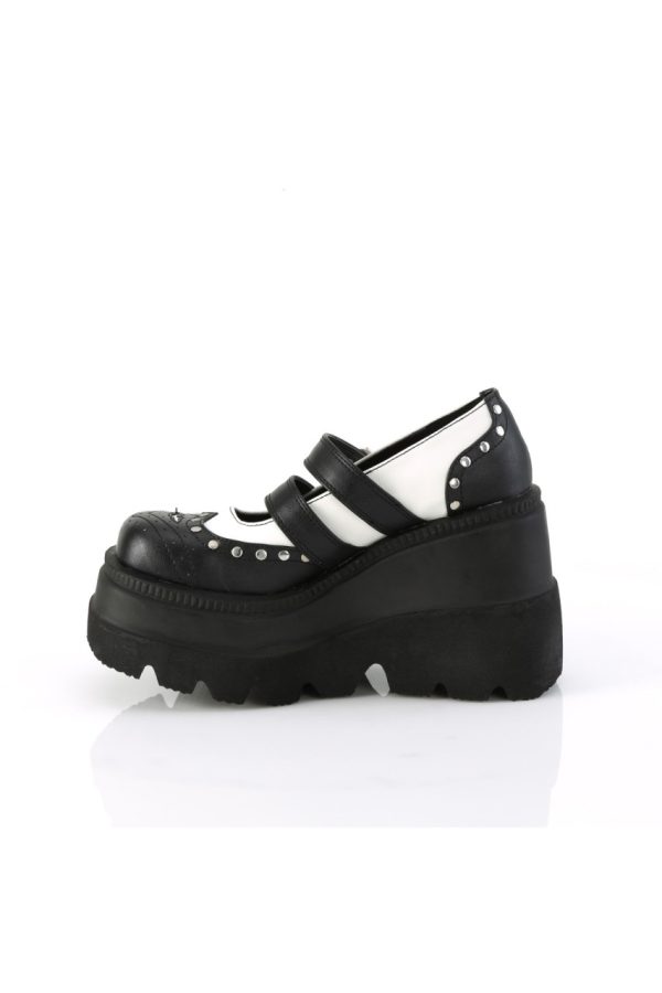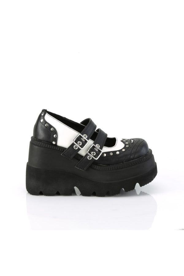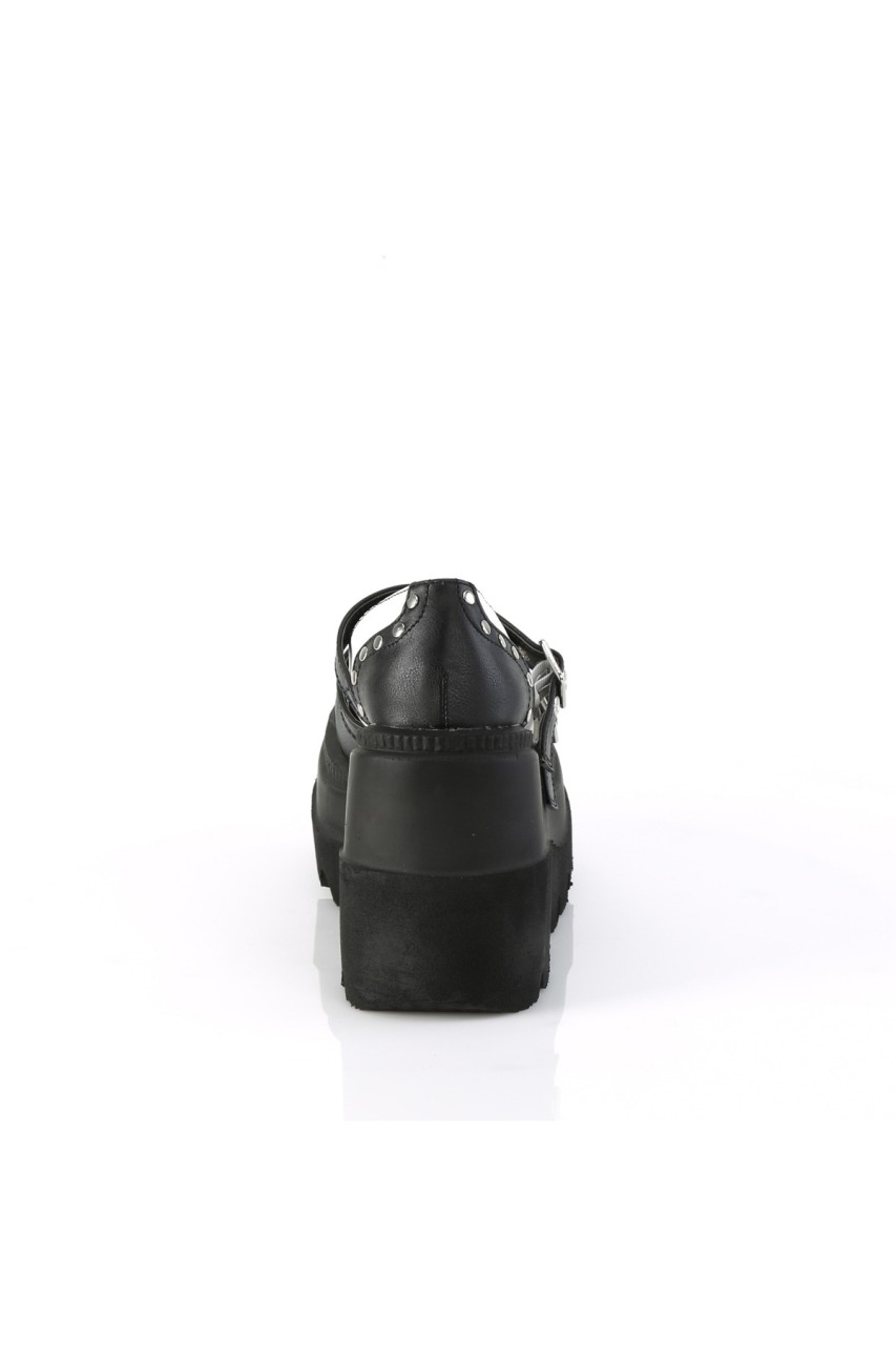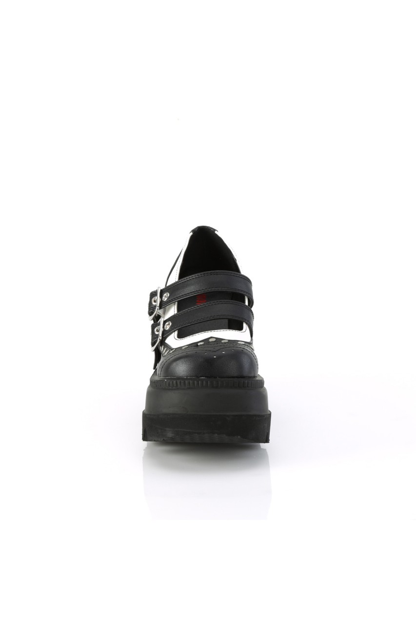 4 1/2″” (114mm) Wedge Platform Double Buckle Strap Wingtip Maryjane Featuring Silver-Tone Flat Round Studded Vamp and Heel