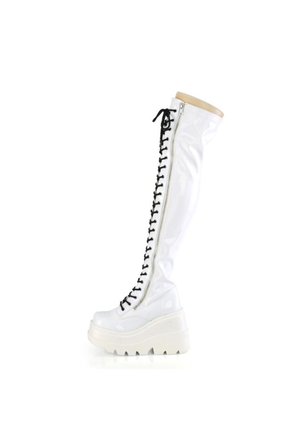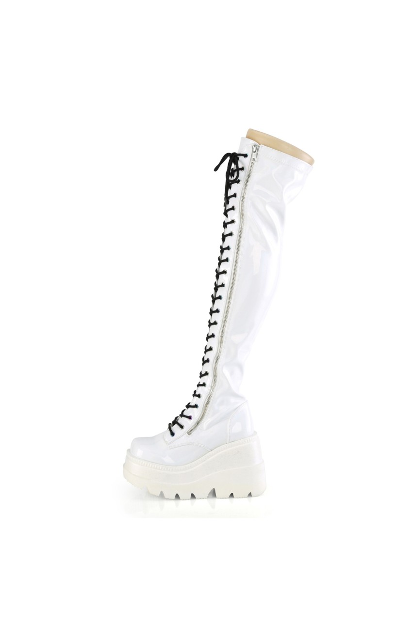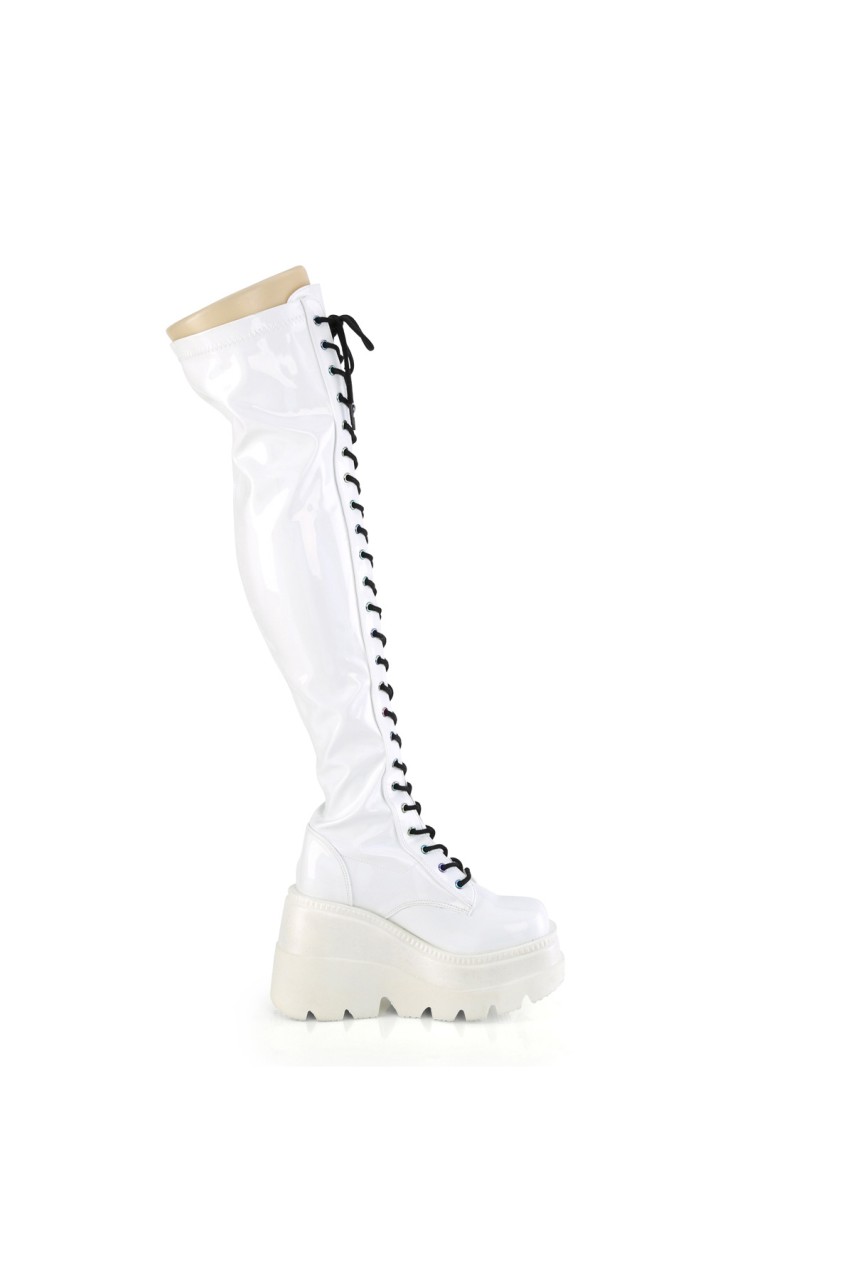 4 1/2″” (114mm) Wedge Platform Lace-Up Stretch Thigh-High Boot, Full Length Outside Metal Zip Closure