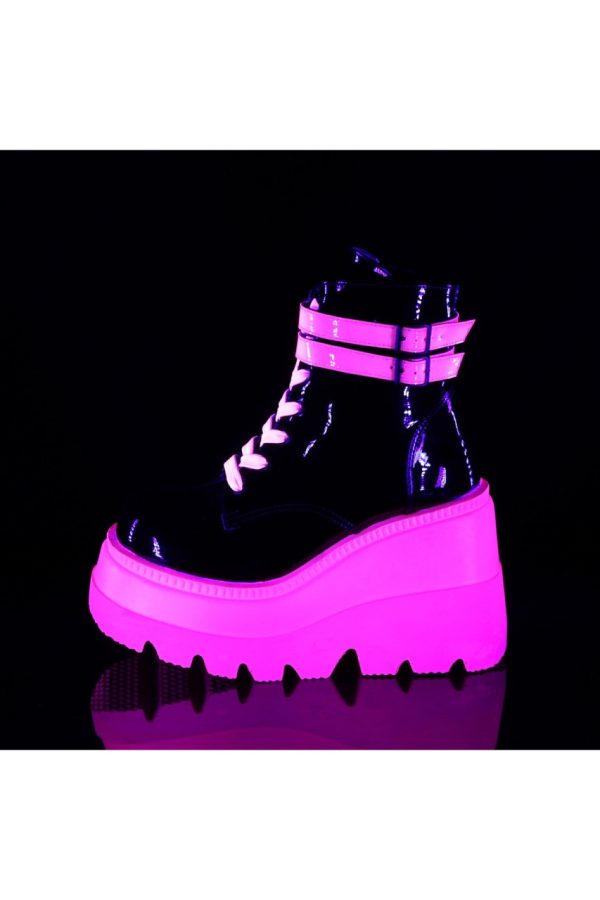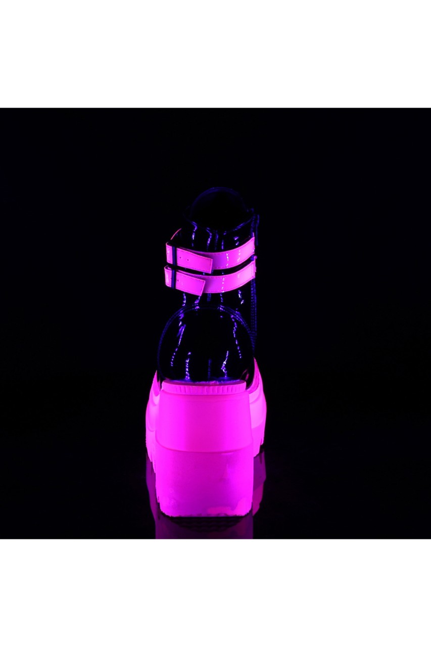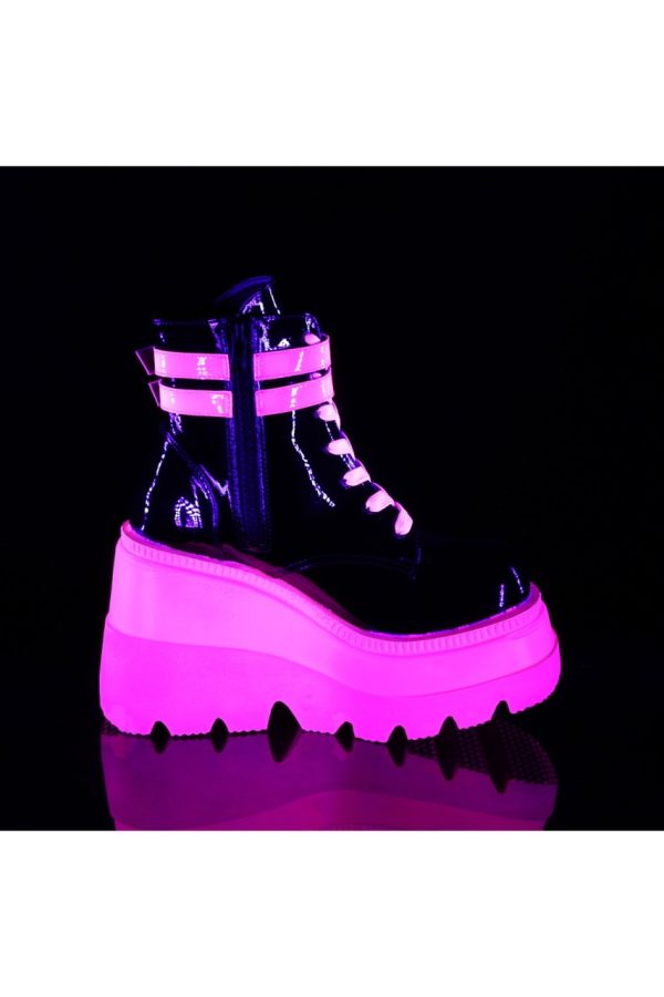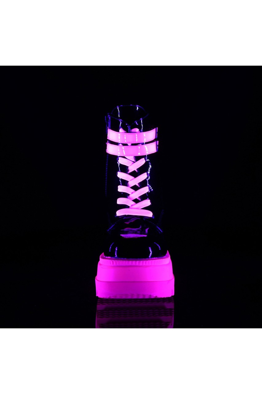 4 1/2″” (114mm) Wedge Platform Lace-Up Front Ankle Boot w/ Double Buckled Ankle Straps, Inner Side Zip Closure