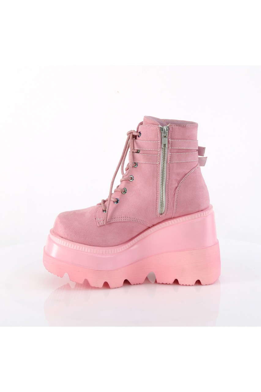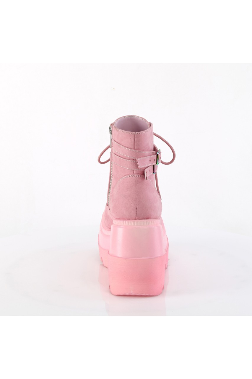 4 1/2″” (114mm) Wedge Platform Lace-Up Front Ankle Boot w/ Double Buckled Ankle Straps, Inner Side Zip Closure