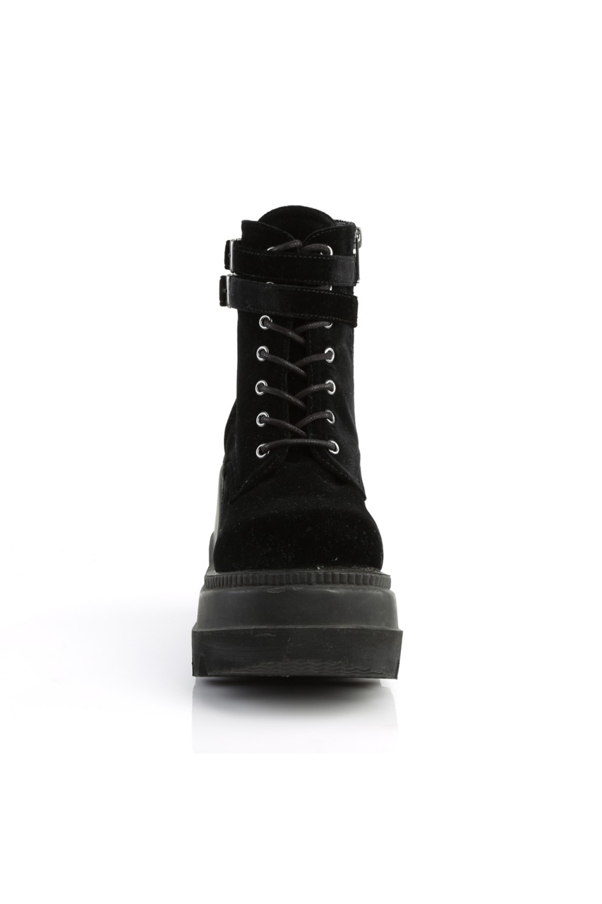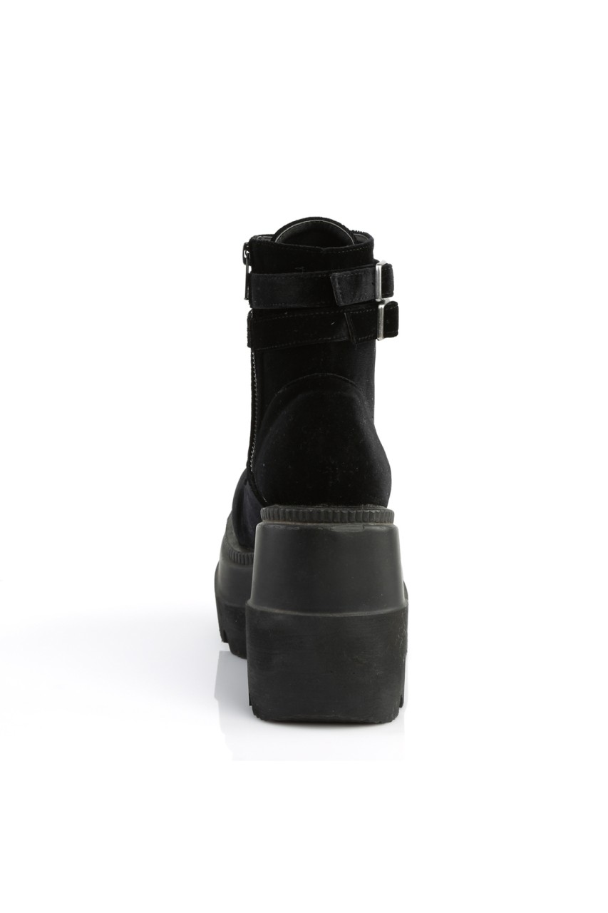 4 1/2″” (114mm) Wedge Platform Lace-Up Front Ankle Boot w/ Double Buckled Ankle Straps, Inner Side Zip Closure