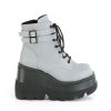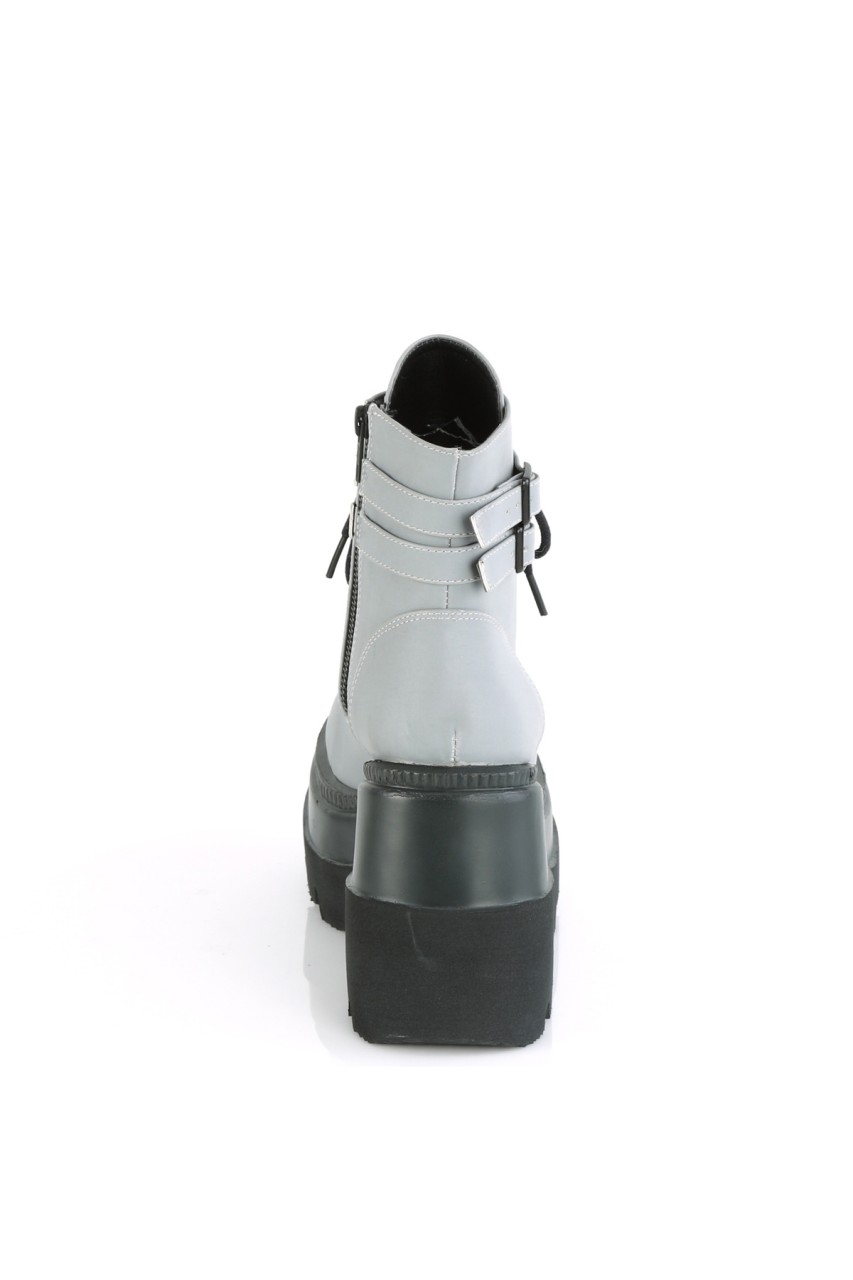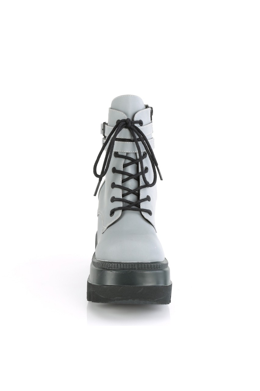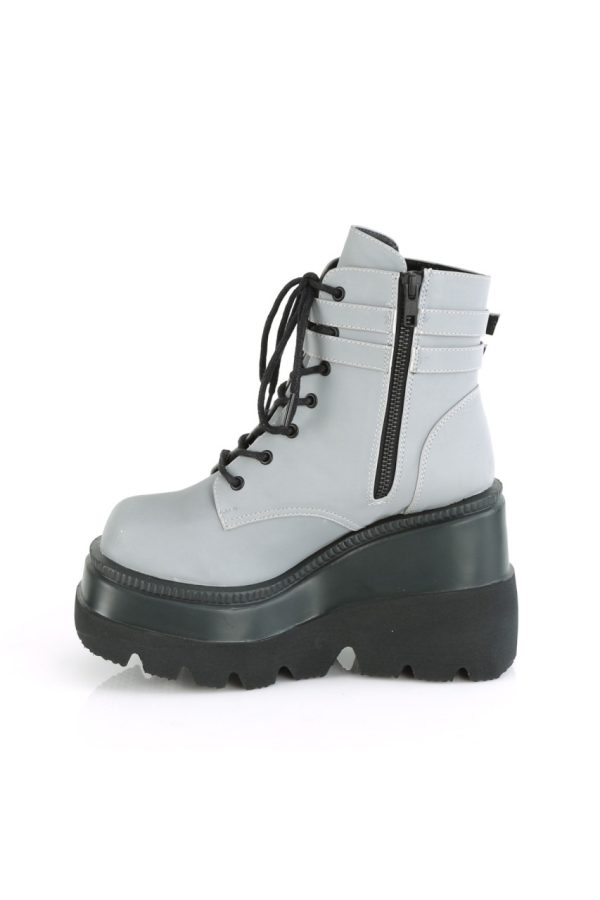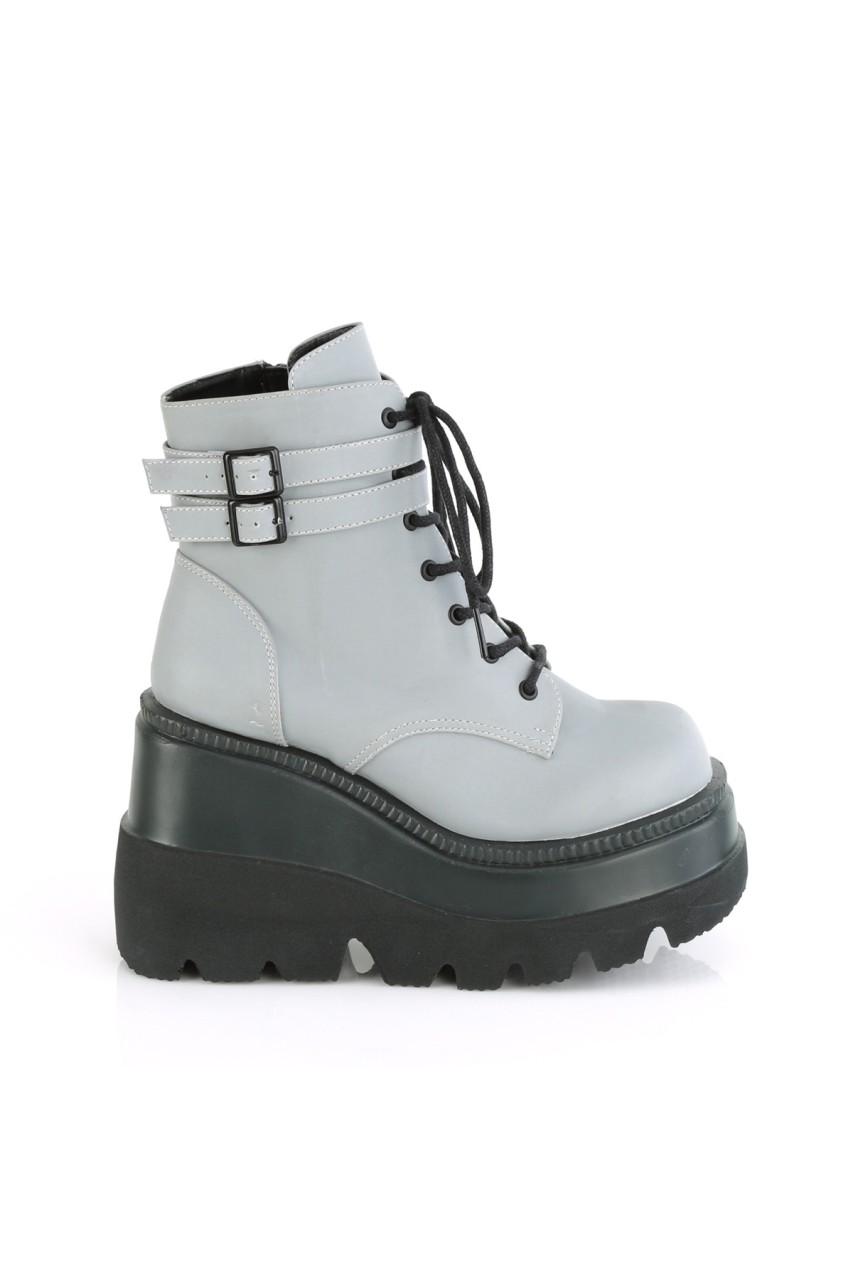 4 1/2″” (114mm) Wedge Platform Lace-Up Front Ankle Boot w/ Double Buckled Ankle Straps, Inner Side Zip Closure