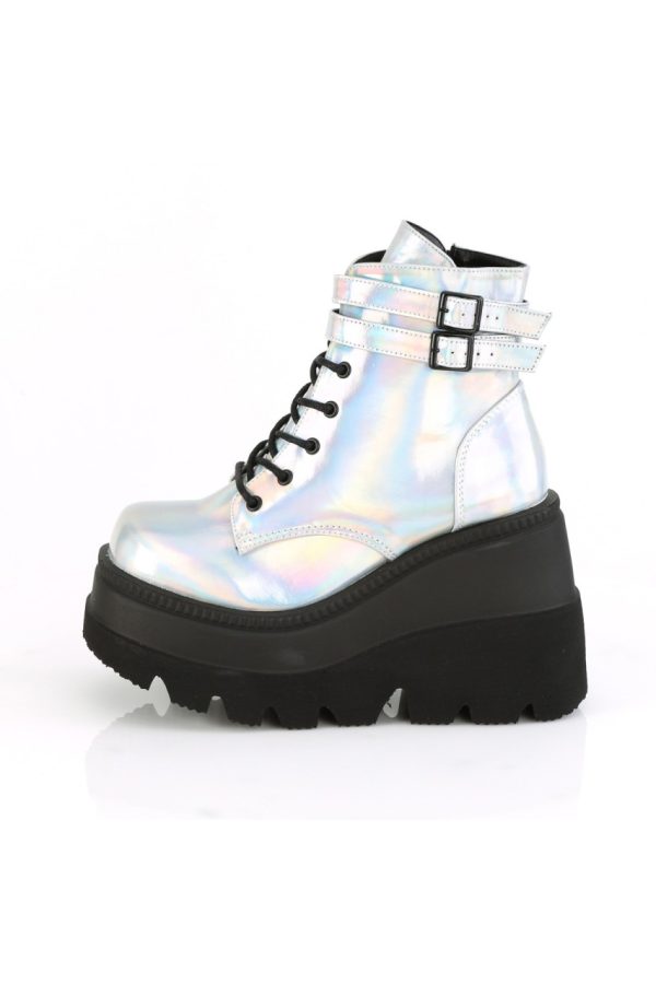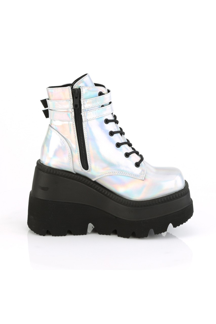 4 1/2″” (114mm) Wedge Platform Lace-Up Front Ankle Boot w/ Double Buckled Ankle Straps, Inner Side Zip Closure