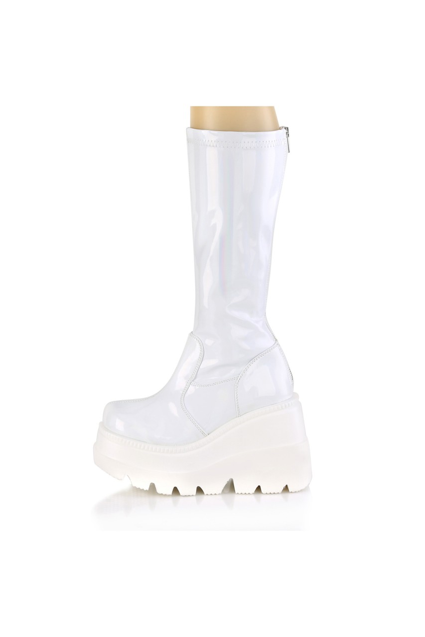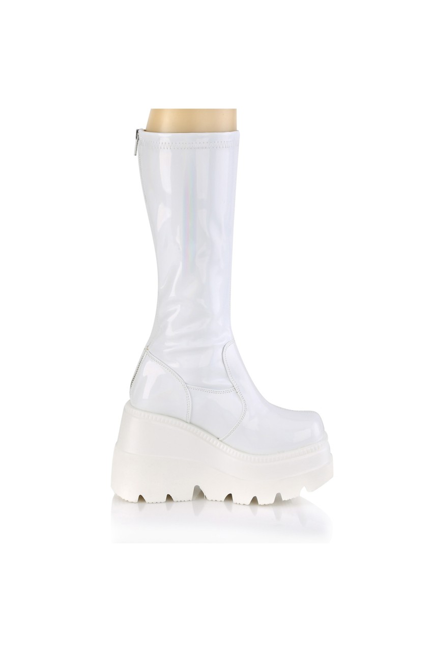 4 1/2″” (114mm) Wedge Platform Stretch Knee High Boot , Full Length Back Metal Zip Closure