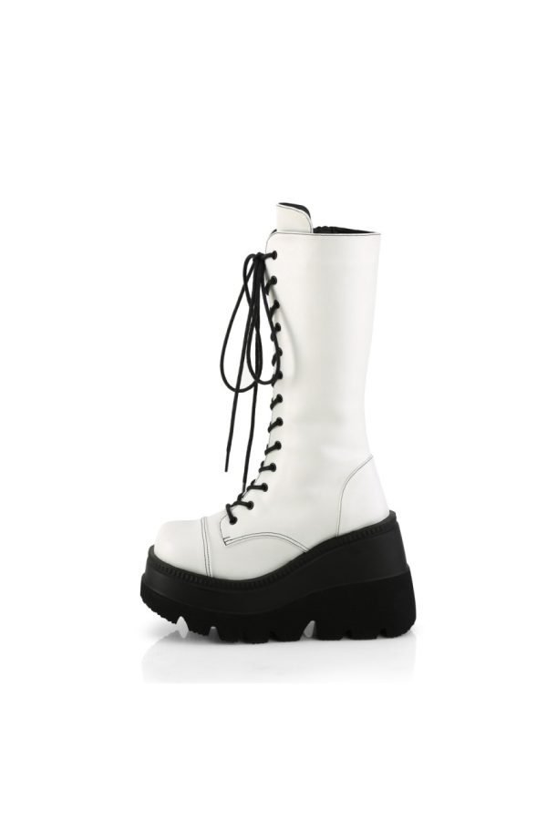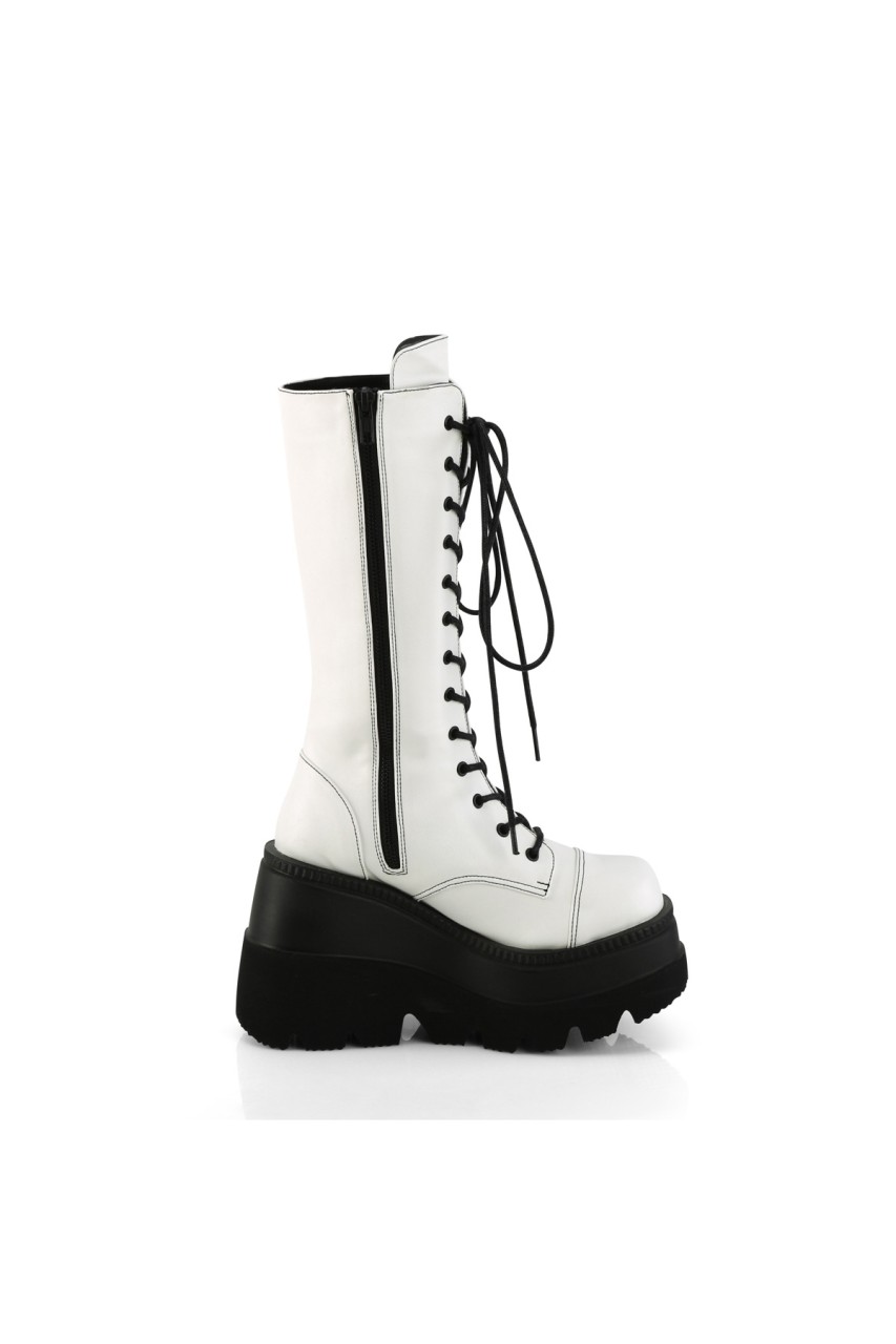4 1/2″” (114mm) Wedge Platform Lace-Up Front Mid-Calf Boot, Full-Length Inner Side Zip Closure