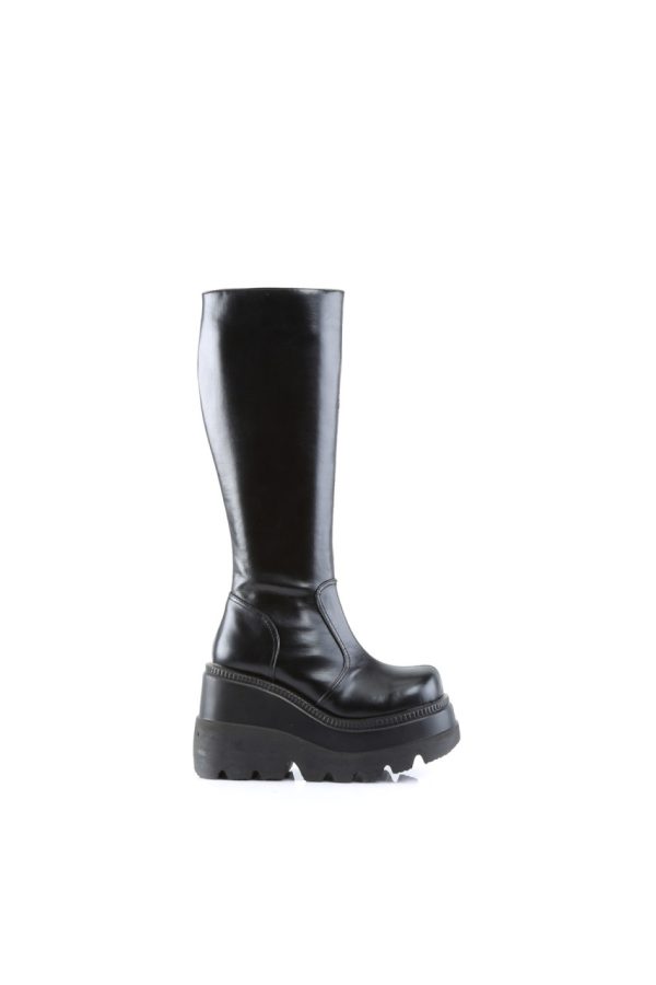 4 1/2″” (11.4cm) Stacked Wedge Platform Knee High Boot Full Inner Side Zip Closure