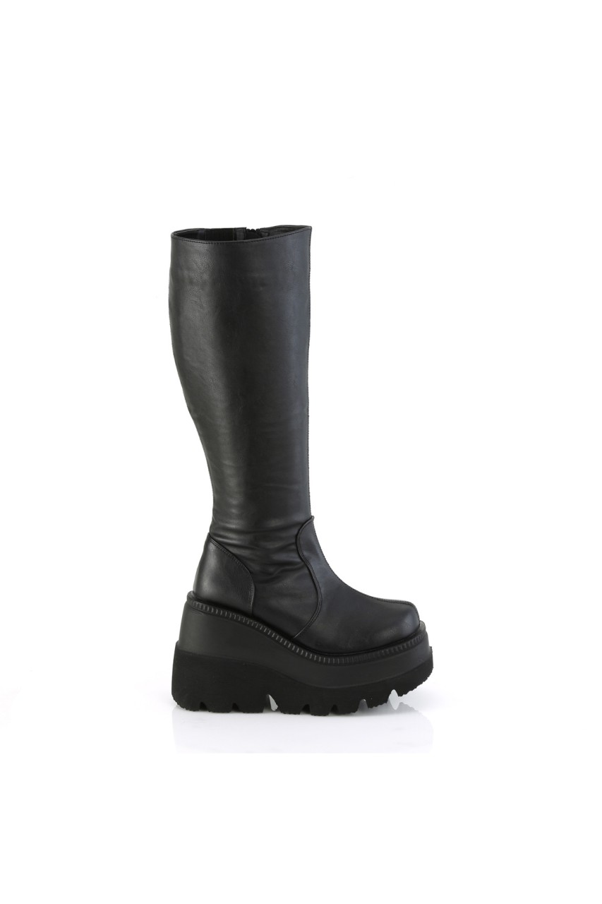4 1/2″” (114mm) Wedge Platform Wide Calf Knee High Boot , Full Length Inner Side Zip Closure