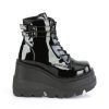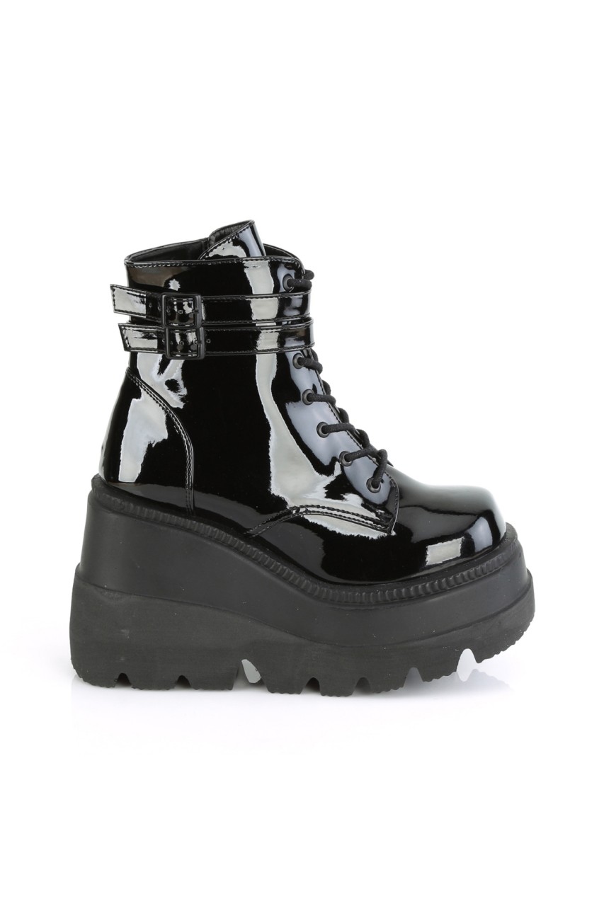 4 1/2″” (114mm) Wedge Platform Lace-Up Front Ankle Boot w/ Double Buckled Ankle Straps, Inner Side Zip Closure